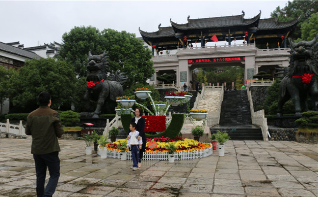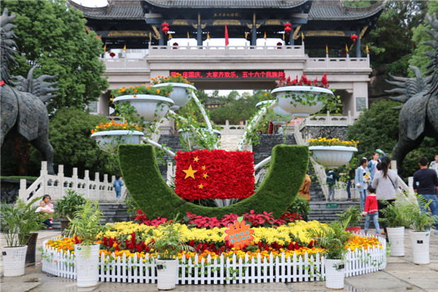 为了营造氛围,景区主大门安置了一个巨大的花坛,上面用鲜花装饰出了五星红旗等标志,喜迎祖国生日;游客中心也被各式绿植装点起来,以崭新的面貌迎接四面八方游客的到来。值得一提的是,黄金周期间,景区内的桂花也争相盛开,飘香迎客,微风阵阵,桂花的香气弥漫在景区的每个角落。