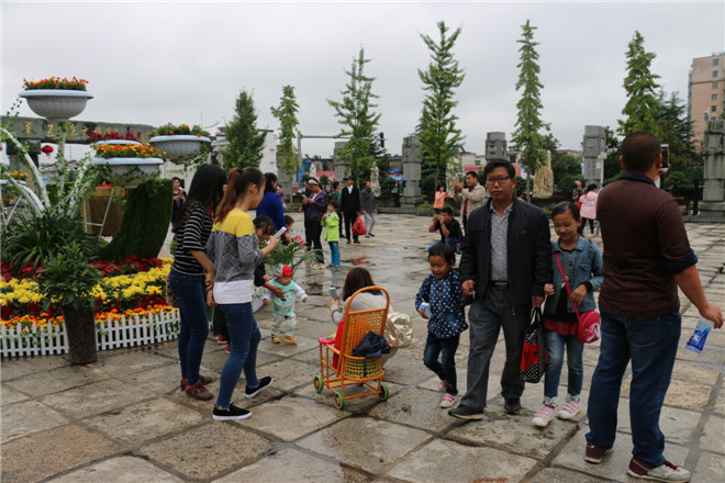 10月1日,在祖国母亲67华诞的欢庆日子里,五千年文博园盛装打扮,迎接来自全国各地的游客。尽管天公不作美,时而下起零星小雨,但是景区喜庆的氛围、优质的服务使游客们的旅游热情不减。